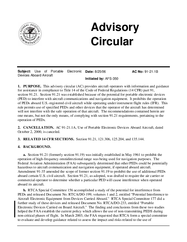 AC 91-21.1B Use of Portable Electronic Devices Aboard Aircraft