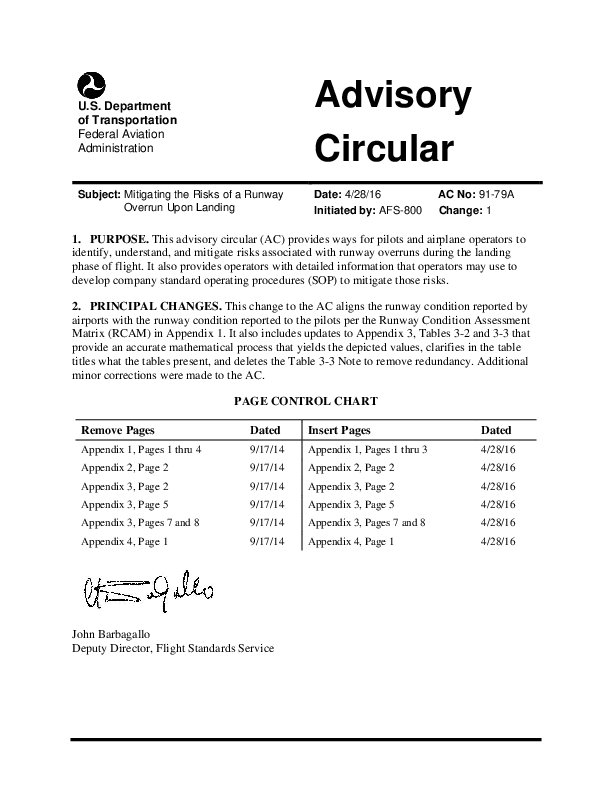 AC 91-79.A Change 1 Mitigating the Risks of a Runway Overrun Upon Landing