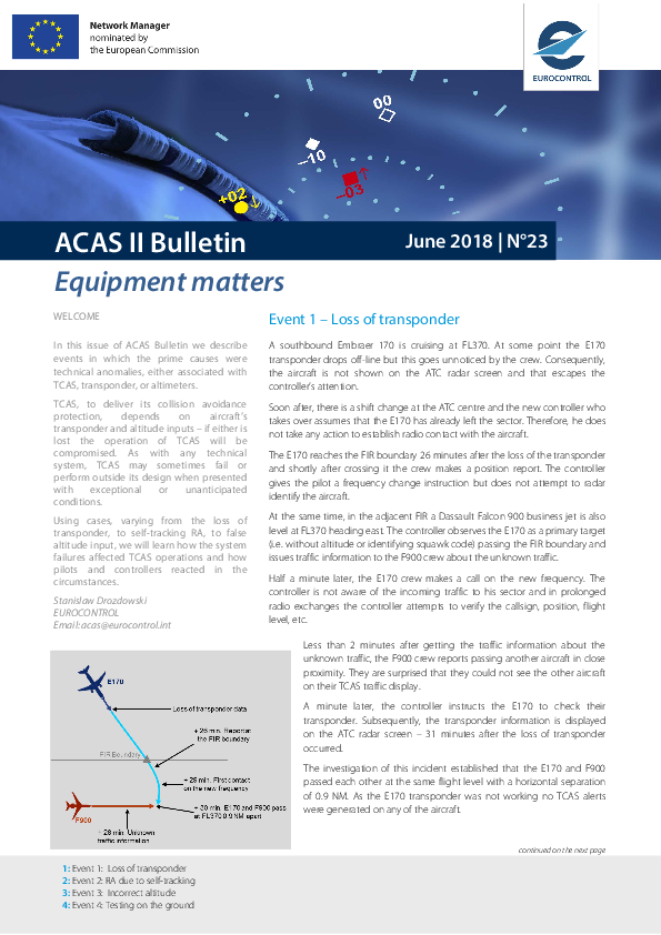 The 23rd edition of the ACAS II Bulletin, describing events in which the prime causes were technical anomalies, either associated with TCAS, transponder, or altimeters.