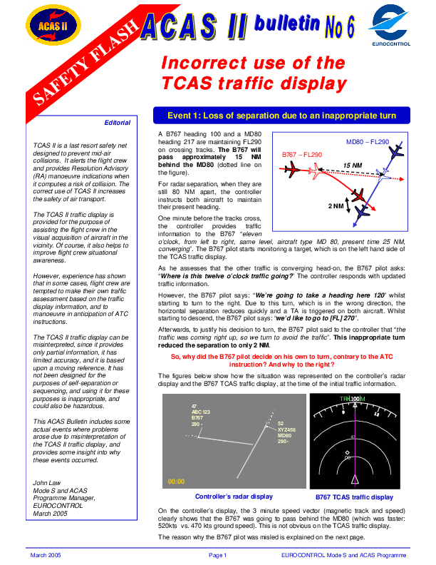 ACAS II Bulletin No. 6 - Incorrect use of the TCAS traffic display - March 2005