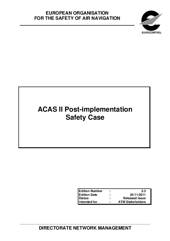 This document contains the Safety Case for ACAS II operations in ECAC airspace following completion of the transition period for implementing Phase 2 of the European ACAS II Policy. The operational context includes the amendments to ICAO ACAS provisions implemented on 20 November 2008.
