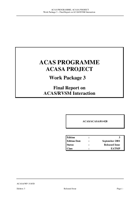 This Study report is a deliverable from work package (WP) 3 of the ACAS Analysis (ACASA) Project, part of the ACAS Programme. The study focusses on technical and operational issues of ACAS/RVSM interaction. It utilises ACAS performance indicators to underline potential improvements, or drawbacks, in the area of safety, pilot acceptance and ATC compatibility.