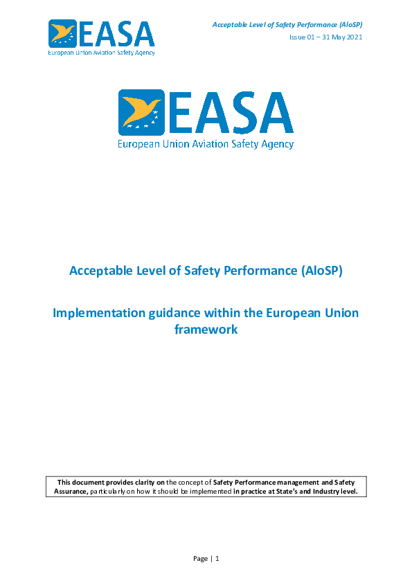 Acceptable Level of Safety Performance (AloSP) - Implementation guidance within the European Union framework
