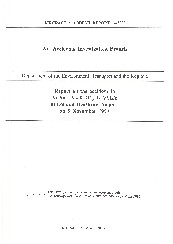 Accident Report 4/2000, A343 landing gear malfunction, London Heathrow, 5 November 1997