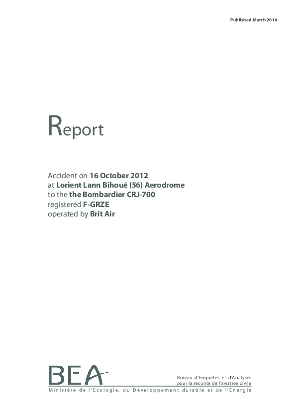 Accident Report: CRJ7 Runway excursion, Lorient France, 16 Oct 2012