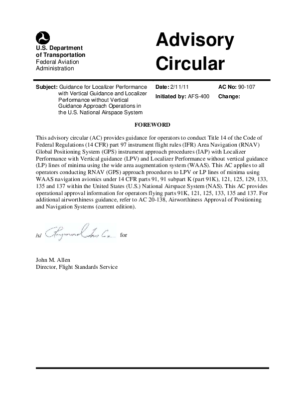 Advisory Circular 90-107 - Guidance for Localizer Performance with Vertical Guidance and Localizer P