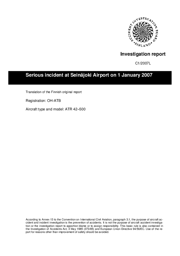 AIBF - Investigation Report No: C1/2007L AT45 near CFIT and LOC, Jan 2007