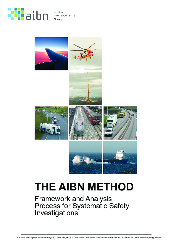 This document describes the Accident Investigation Board Norways (AIBN) framework and analysis process for systematic investigations.