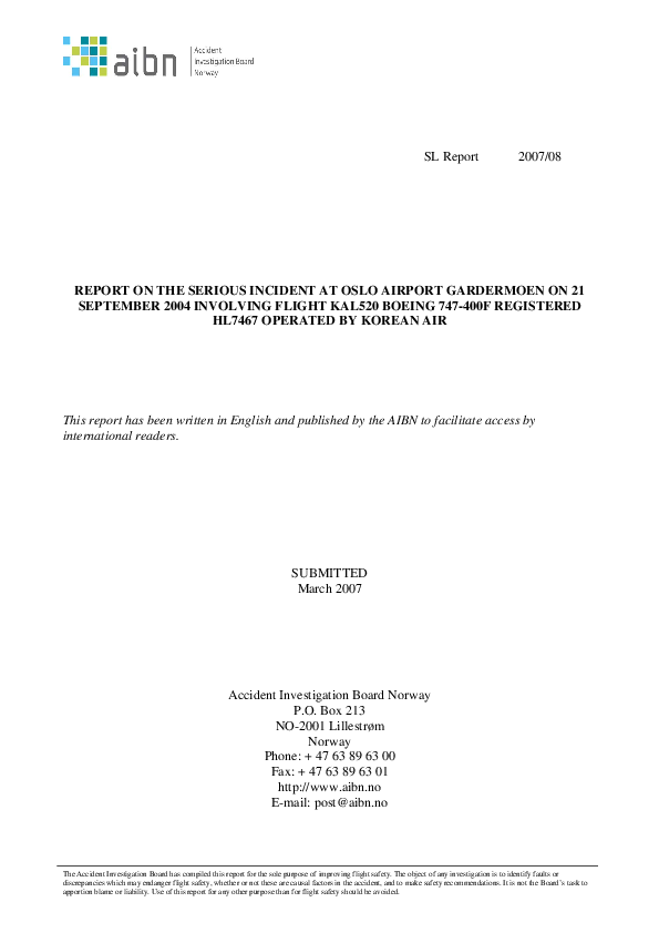 AIBN - Report 2007/08 B744 misloading and subsequent control difficulties (GND LOC)