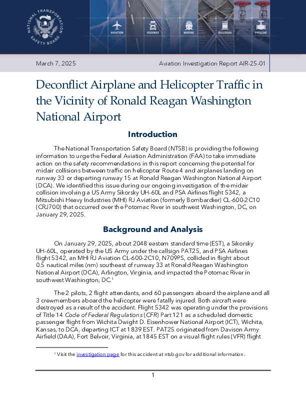 AIR-25-01: Deconflict Airplane and Helicopter Traffic in the Vicinity of Ronald Reagan Washington National Airport