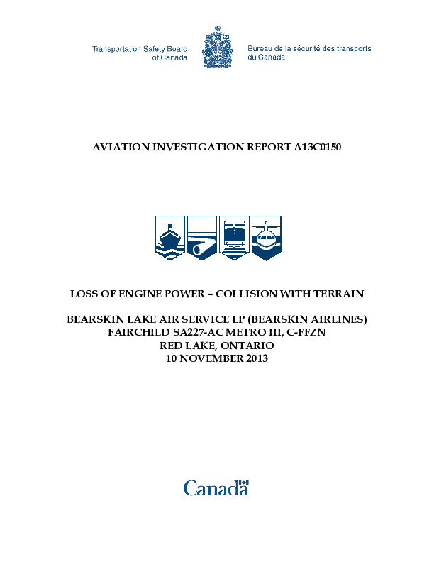 On 10 November 2013 the left engine of a Fairchild SA227 on final approach suddenly ceased to produce any power at approximately 500 feet whilst continuing to operate. The crew did not identify what had happened in time to avoid losing control of the aircraft which then impacted terrain, caught fire and was destroyed. The Investigation found that premature failure of engine components had caused the engine malfunction and noted that some pilots may believe that the Negative Torque Sensing (NTS) System provided for the engines on this aircraft type will always detect high drag conditions arising from power loss.