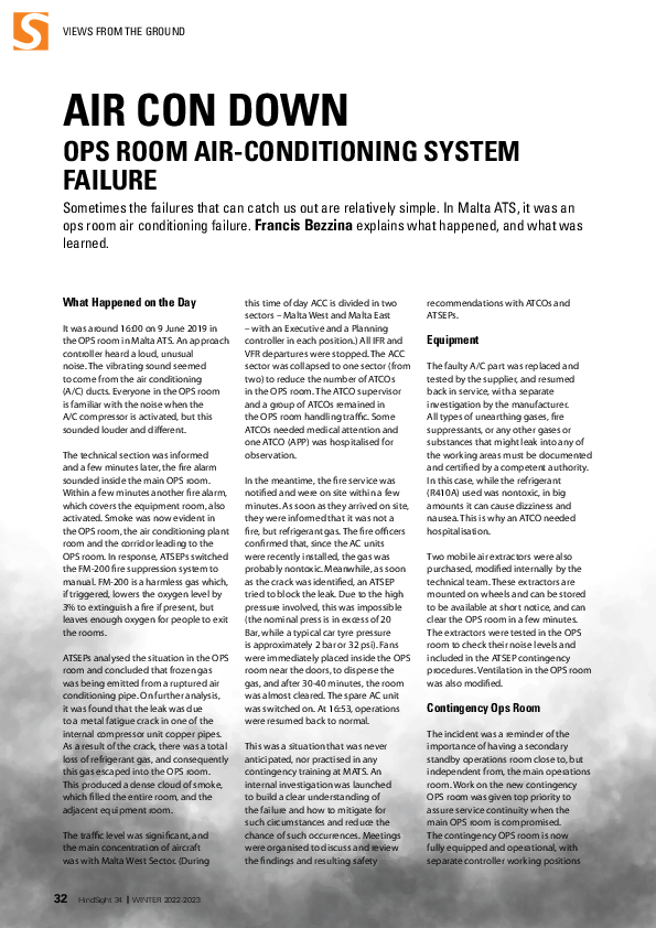 Air con down: Ops room air conditioning system failure (HS34)