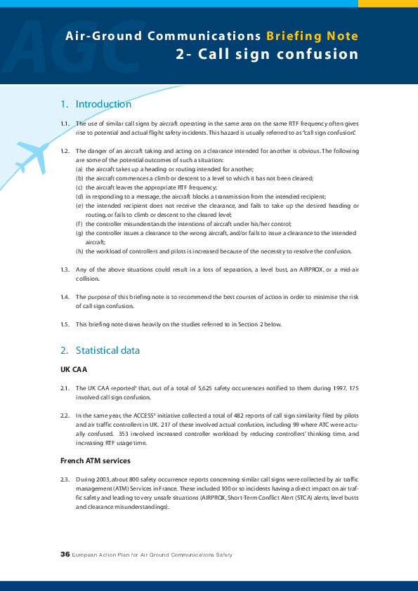 Air-Ground Communications Briefing Note 2 - Call Sign Confusion
