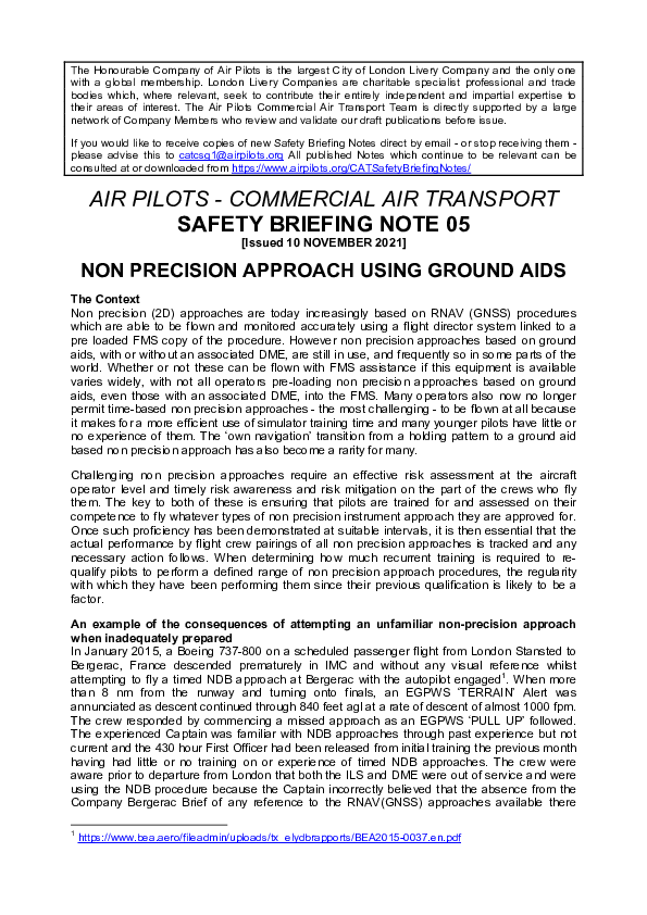 Air Pilots - Commercial Air Transport SAFETY BRIEFING NOTE 05:Non Precision Approach Using Ground Aids