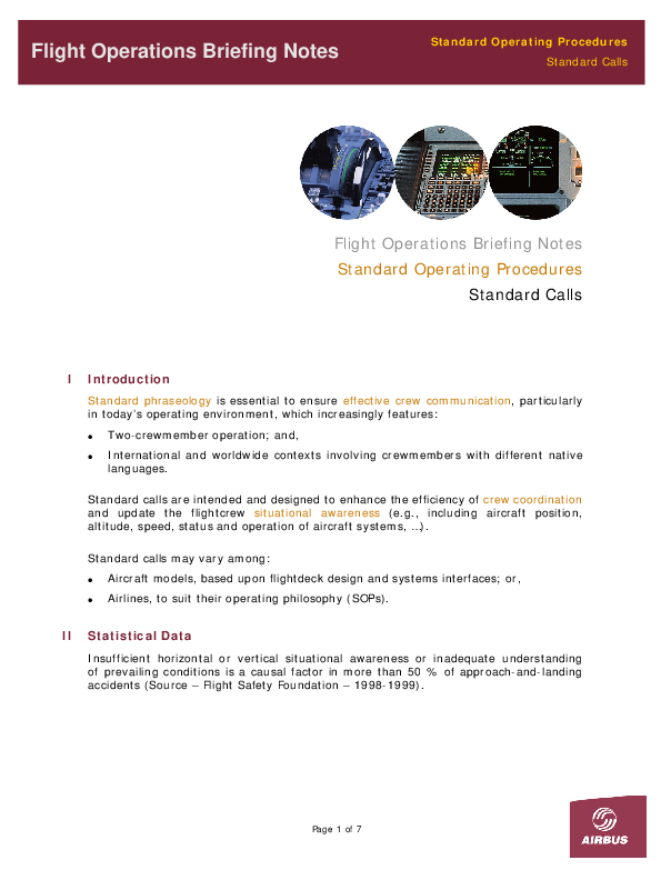 Airbus FOBN - Standard Operating Procedures - Standard Calls