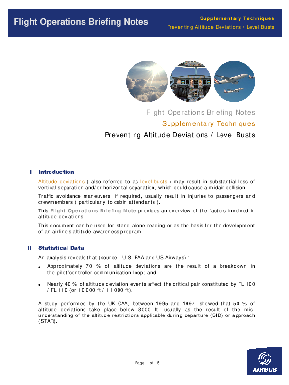 Airbus FOBN - Supplementary Techniques - Preventing Altitude Deviations / Level Busts