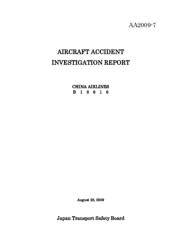 Aircraft Accident Investigation Report AA2009-7, China Airlines B738 (FIRE AW)