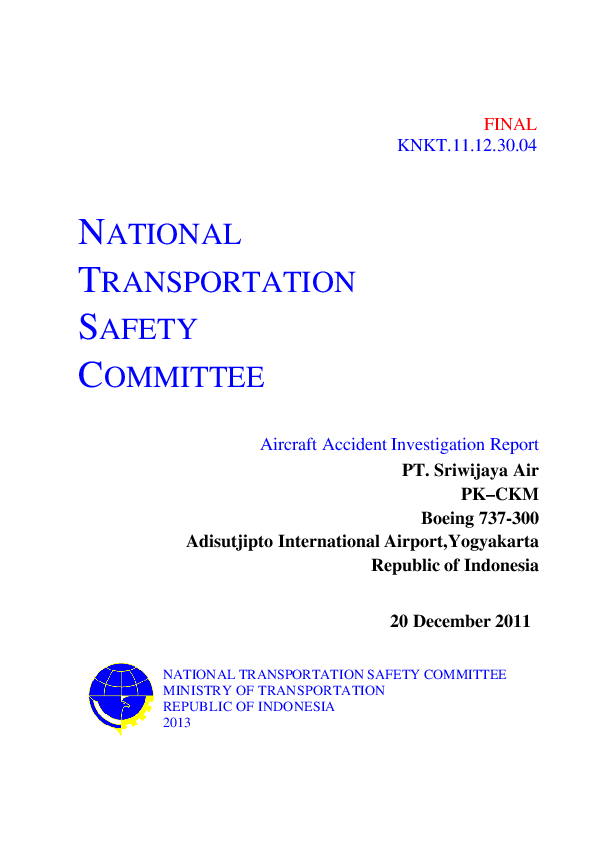 Aircraft Accident Investigation Report, B733 runway excursion, Yogyakarta, Indonesia, 20 Dec 2011