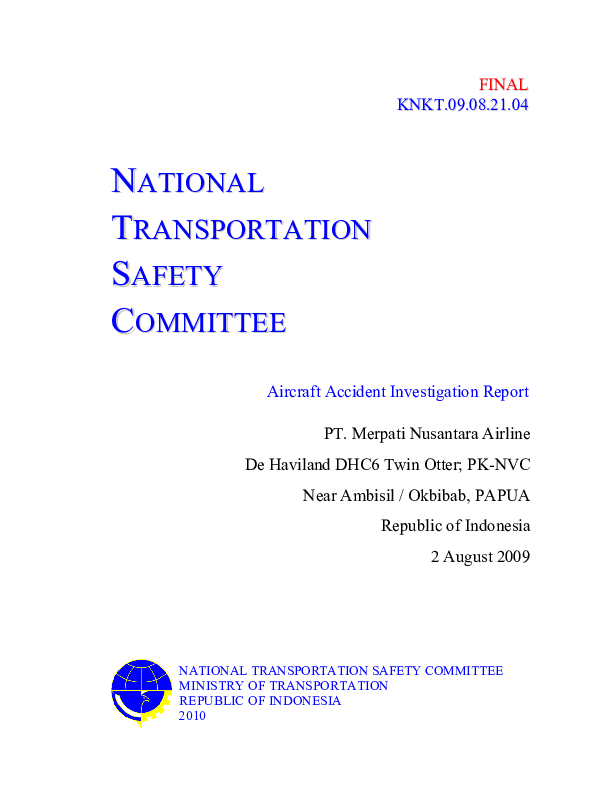 Aircraft Accident Investigation Report KNKT.09.08.21.04