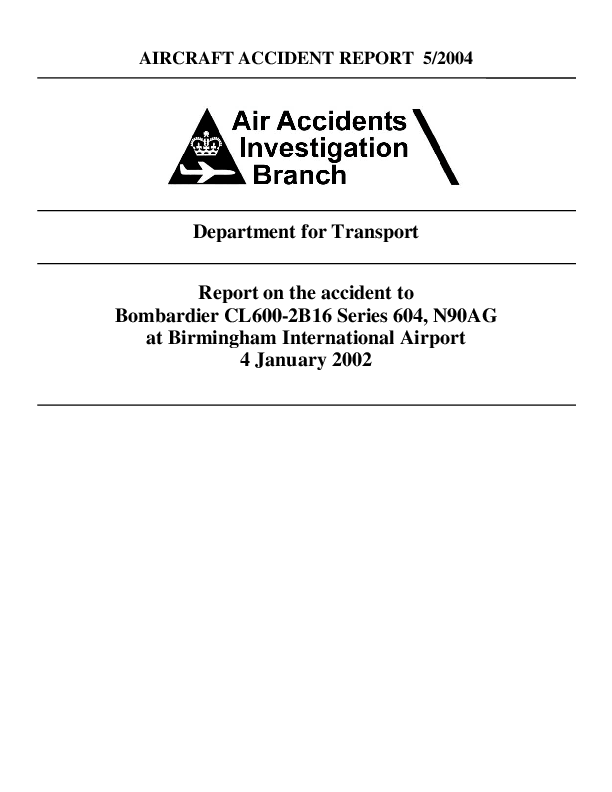 Aircraft Accident Report 5/2004, CL60 loss of control, Birmingham airport, 4 Jan 2002