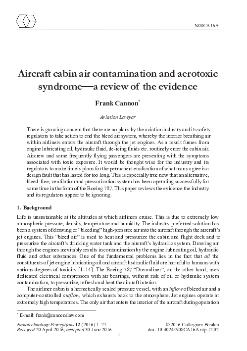 Aircraft cabin air contamination and aerotoxic syndrome - a review of the evidence