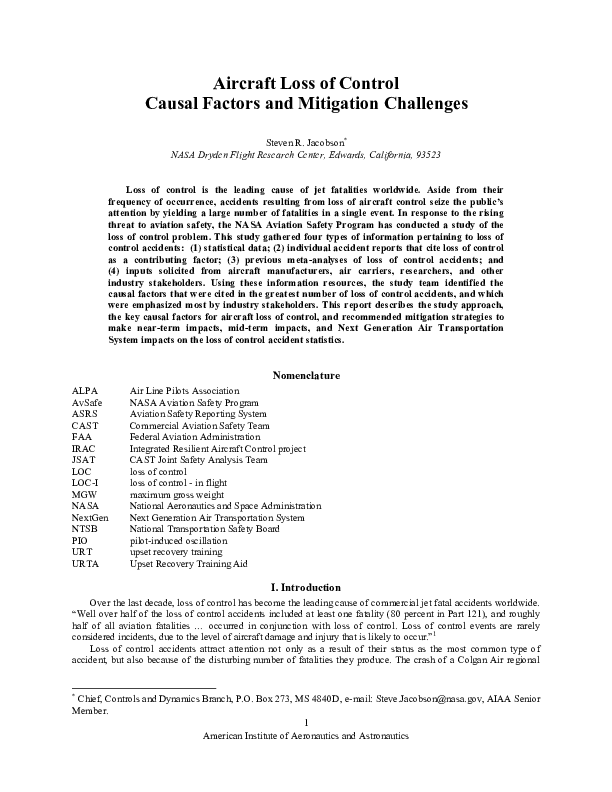 Aircraft Loss of Control: Causal Factors and Mitigation Challenges