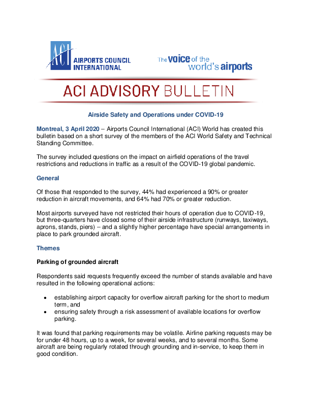 ACI Advisory Bulletin on safety and operations developed based on an ACI survey.