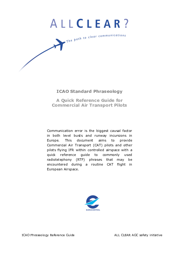 ICAO Standard Phraseology. A Quick Reference Guide for Commercial Air Transport Pilots