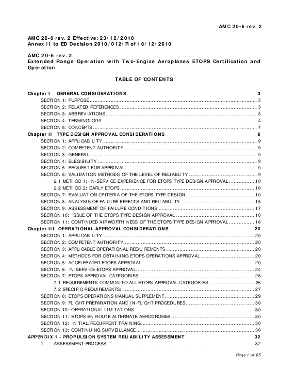 AMC 20-6 rev.2 Extended Range Operation with Two-Engine Aeroplanes ETOPS Certification and Operation