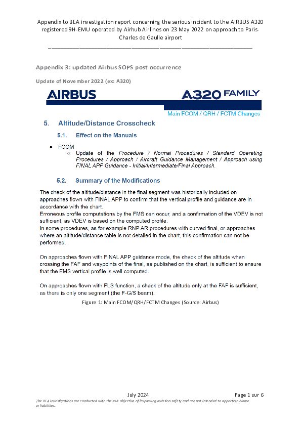 Annex 3 to Final report, A320 (9H-EMU), vicinity Paris CDG France, 23 May 2022, providing updated Airbus SOPS post occurrence.