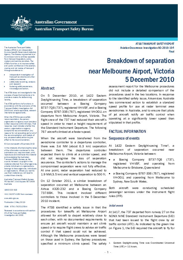 AO-2010-104, loss of separation between B763 and B738, Melbourne Australia, 5 Dec 2010