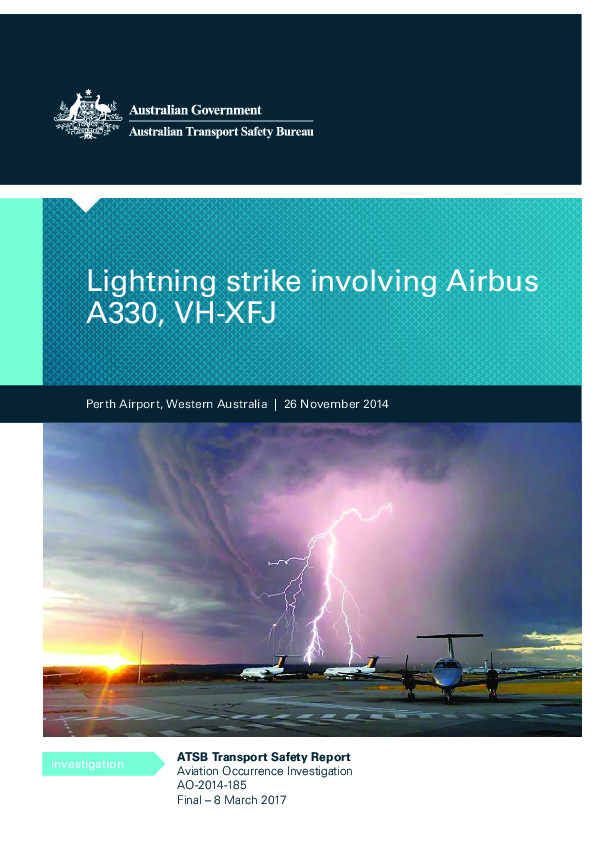 On 26 November 2014, an Airbus A330-200 was struck by lightning just after arriving at its allocated stand following a one hour post-landing delay after suspension of ramp operations due to an overhead thunderstorm. Adjacent ground services operatives were subject to electrical discharge from the strike and one who was connected to the aircraft flight deck intercom was rendered unconscious. The Investigation found that the equipment and procedures for mitigation of risk from lightning strikes were not wholly effective and also that perceived operational pressure had contributed to a resumption of ground operations which hindsight indicated had been premature.