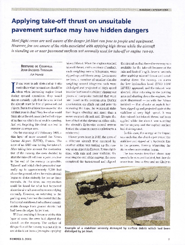 Article by Bertrand de Courville & Jean Jacques Thisselin concerning jet efflux hazard published in ICAO Journal, Issue 3, 2004