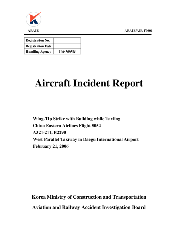 ARAIB - AIR F0601, A321 wing tip strike with building, Daegu South Korea, 21 Feb 2006