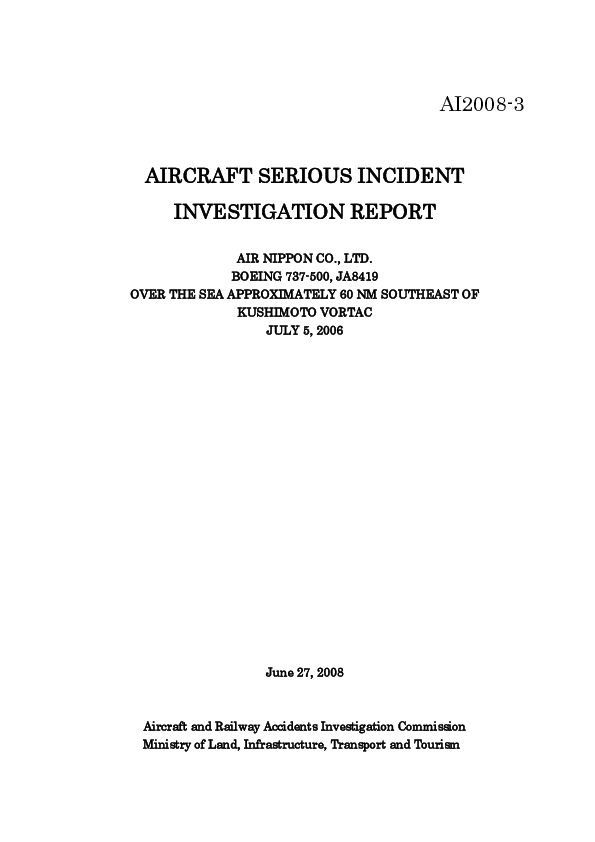 ARAIC - AI2008-3 B735 Depressurisation, 60NM SE of Kushimoto, 5 July 2006