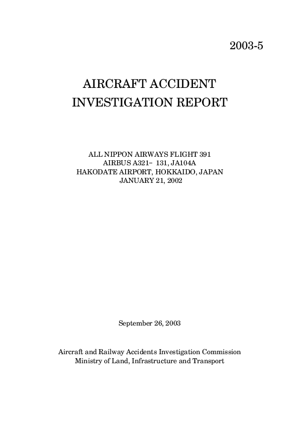 ARAIC - Aircraft Accident Investigation Report 2003-5, A321 windshear encounter, Hakodate, Japan, 21