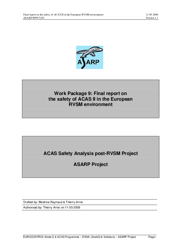 ASARP: Final Report on the Safety of ACAS II in the European RVSM Environment