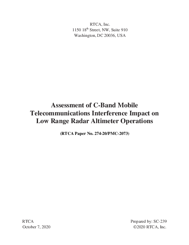 This document was prepared by Special Committee 239 (SC-239) and approved by the RTCA Program Management Committee (PMC) on October 7, 2020.