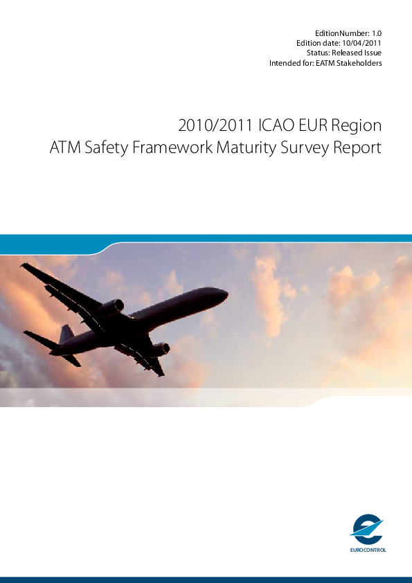 This Report summarises the findings of the 2010/2011 ICAO EUR Region ATM Safety Framework Maturity Survey. Commission Regulation (EU) No 691/2010 lays down a performance scheme for air navigation services and network functions within EU. In addition the remaining ICAO EUR and AFI regions Member States are adopting similar principles through ICAO SSP/S