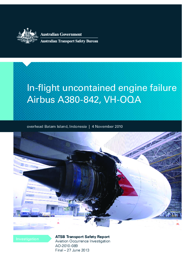 The Final Report of the Investigation AO-2010-089 was published on 27 June 2013