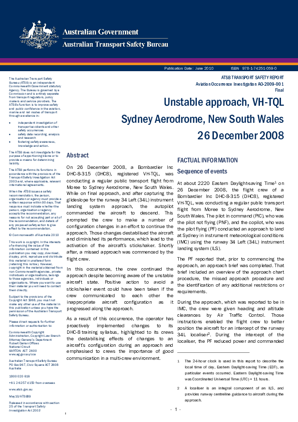 ATSB - Aviation Occurrence Investigation AO-2009-001, DH8C Unstable approach, Sydney Australia, 26 D