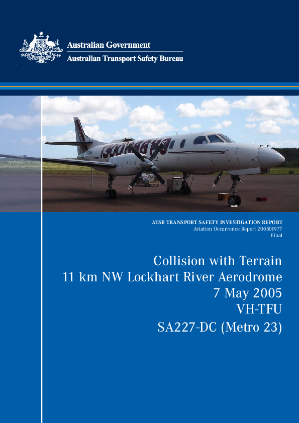 ATSB TRANSPORT SAFETY INVESTIGATION REPORT Aviation Occurrence Report 200501977 Final: Collision with Terrain 11 km NW Lockhart River Aerodrome 7 May 2005 VH-TFU SA227-DC (Metro 23)