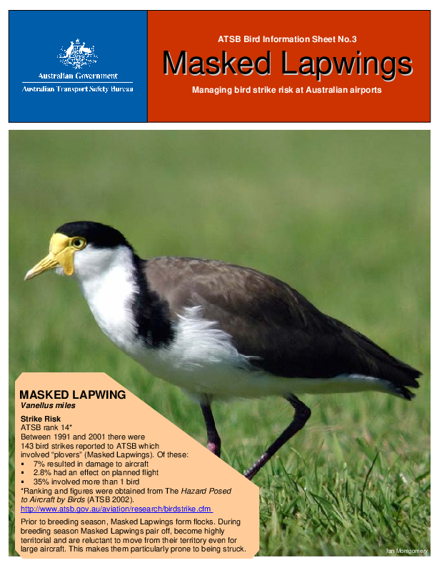 ATSB Bird Information Sheet No.3 Masked Lapwings: Managing bird strike risk at Australian airports