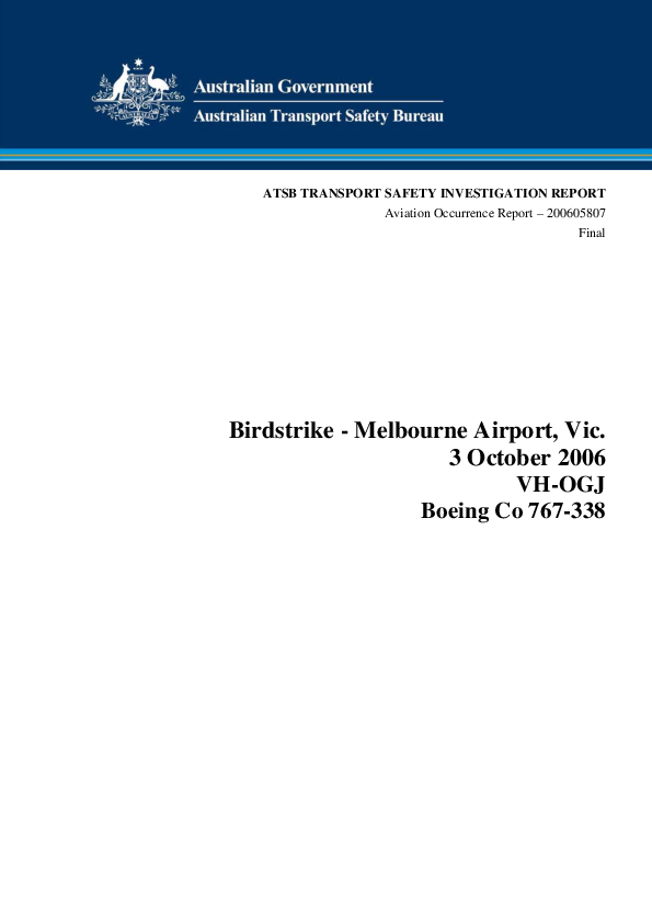 ATSB - Safety Investigation Report 200605807 B763 Bird Strike