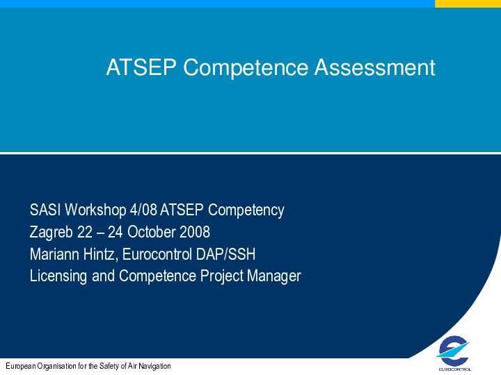 This presentation contains informations about the Generic Competence Management Model, competence assessement methods, organisational issues, ATSEP Competence Scheme.