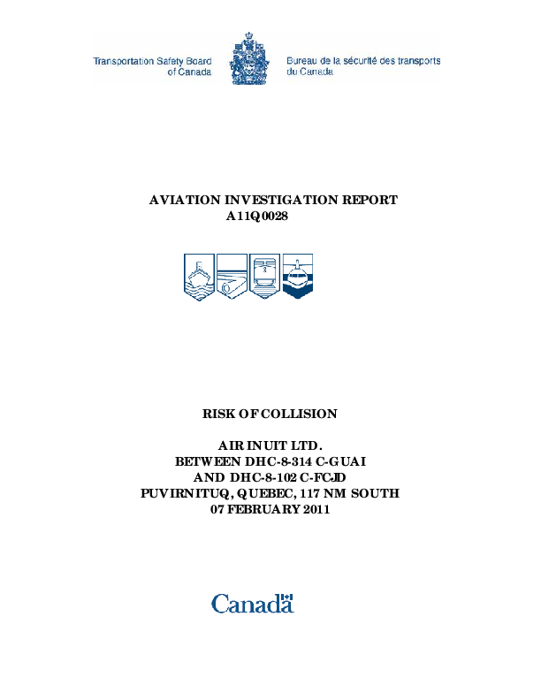 Aviation Investigation Report A11Q0028, Risk of collision between two DHC8s, Puvirnituq Quebec, 7 Fe