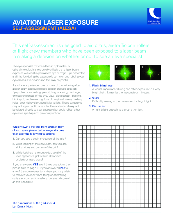 This self-assessment is designed to aid pilots, air-traffic controllers, or flight crew members who have been exposed to a laser beam in making a decision on whether or not to see an eye specialist.