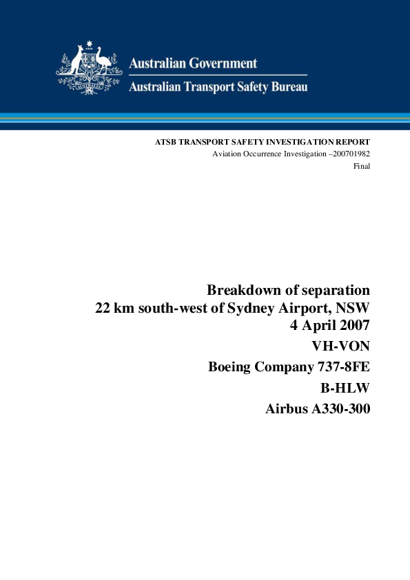Aviation Occurrence Investigation 200701982 Breakdown of separation