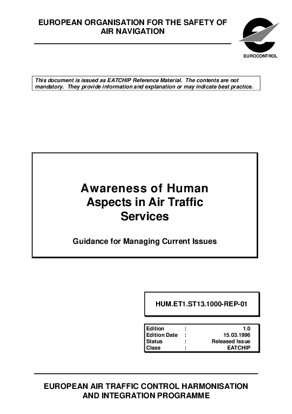 Awareness of Human Aspects in Air Traffic Services - Guidance for Managing Current Issues