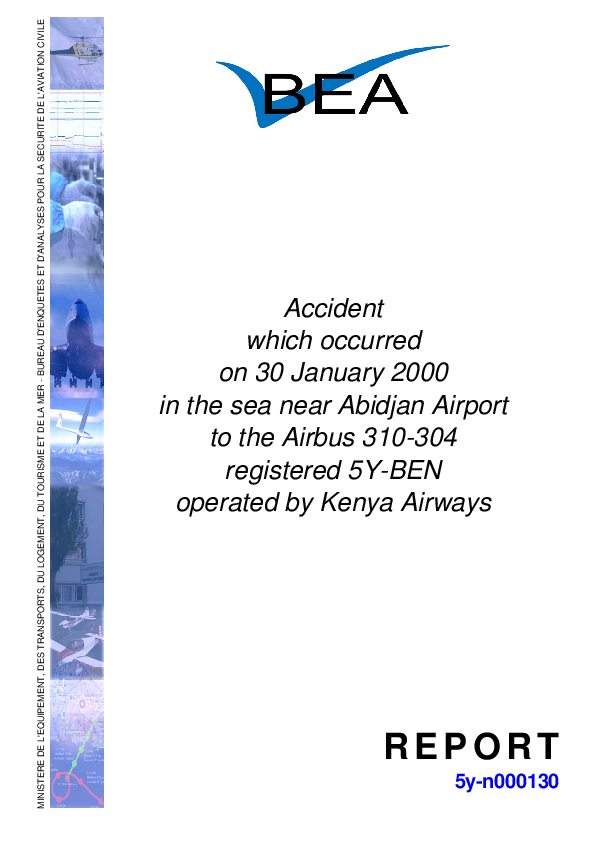 BEA - Accident Report 5y-n000130 A310 CFIT after take off, Abidjan, Ivory Coast, 30 Jan 2000